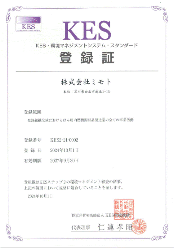 (株)ミモトは、「KES・環境マネジメントシステム・スタンダード ステップ2」の確認審査の結果、
