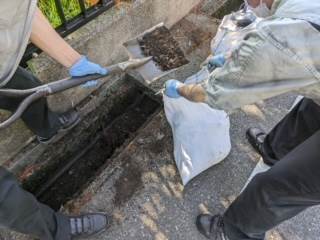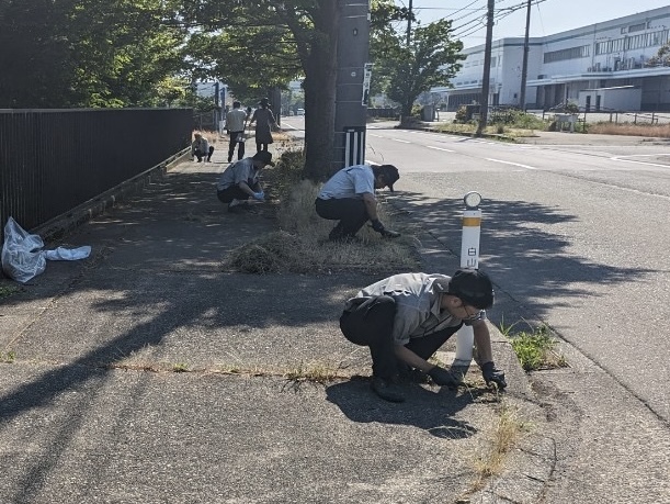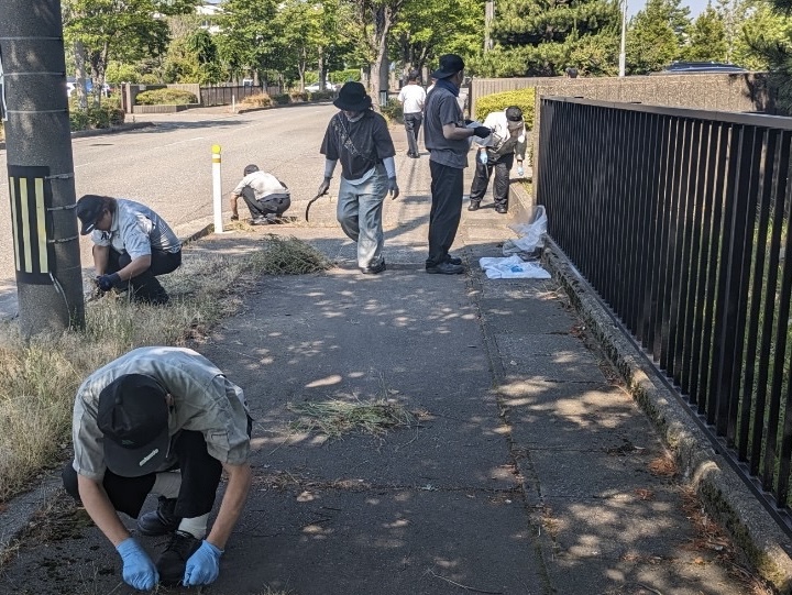 敷地内の草むしり、敷地外の溝掃除、歩道のゴミ拾い。
