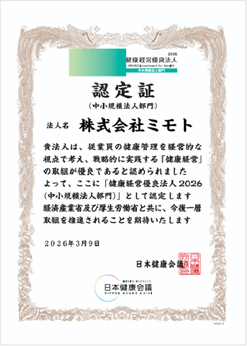 健康経営優良法人2026(中小規模法人部門)に認定されました。
